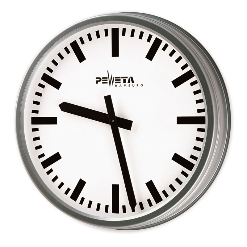 dankzij de grote, duidelijke wijzers en minutenstreepjes, in één oogopslag de tijd precies af. Dus een moderne en functionele wandklok die ideaal is voor gebruik bij bedrijven en instituties, bijvoorbeeld op het bus- of treinstation en het bedrijfsterrein.
