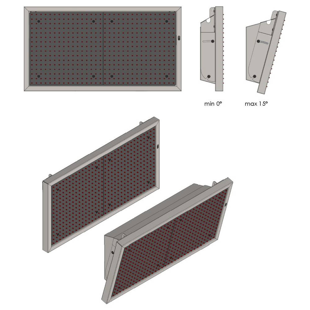 • Rood LED-display met cijfers van 270 mm hoog (4 cijfers voor uur- en minuutindicatie).