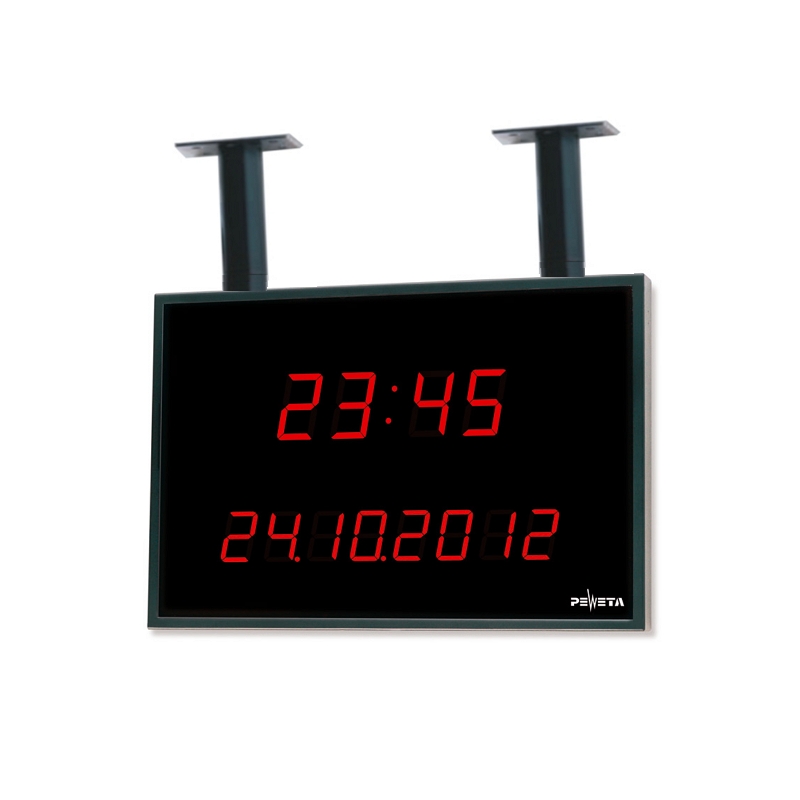 Elektrische, radio gestuurde kalenderplafondklok werkend op 230 volt netstroom, bestemd voor binnen. Op deze dubbelzijdige digitale LED-plafondklok leest u, dankzij de grote en duidelijke cijfers, in één oogopslag de tijd precies af. Dus een moderne en functionele plafondklok die ideaal is voor gebruik bij publieke ruimtes met een receptie- of afsprakenbalie, zoals een apotheek of polikliniek.