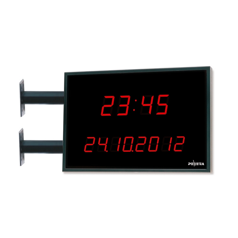 Elektrische, radio gestuurde kalenderwandklok werkend op 230 volt netstroom, bestemd voor binnen. Op deze dubbelzijdige digitale LED-wandklok leest u, dankzij de grote en duidelijke cijfers, in één oogopslag de tijd precies af. Dus een moderne en functionele wandklok die ideaal is voor gebruik bij publieke ruimtes met een receptie- of afsprakenbalie, zoals een apotheek of polikliniek.