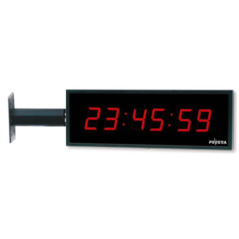 • Zes grote, rode LED-cijfers voor uren-, minuten-, en secondeweergave, zodat de tijd tot op ongeveer 20 meter afstand nog duidelijk te bepalen is.