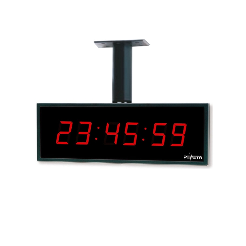 Elektrische plafondklok werkend op 230 volt netstroom, bestemd voor binnen. Op deze dubbelzijdige digitale LED-plafondklok leest u, dankzij de grote en duidelijke cijfers, in één oogopslag de tijd precies af. Dus een moderne en functionele plafondklok die ideaal is voor gebruik bij bedrijven en instituties, zoals op kantoor, fabriekshal en in de kantine.