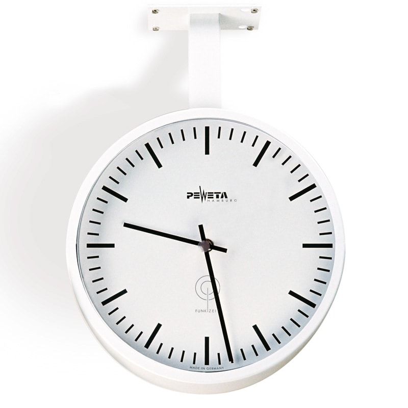 Elektrische, radio gestuurde plafondklok werkend op 230 volt netstroom, bestemd voor binnen. Op deze dubbelzijdige plafondklok leest u, dankzij de grote, duidelijke wijzers en minutenstreepjes, in één oogopslag de tijd precies af. Dus een moderne en functionele plafondklok die ideaal is voor gebruik bij bedrijven en instituties, zoals op kantoor, fabriekshal en in de kantine.
