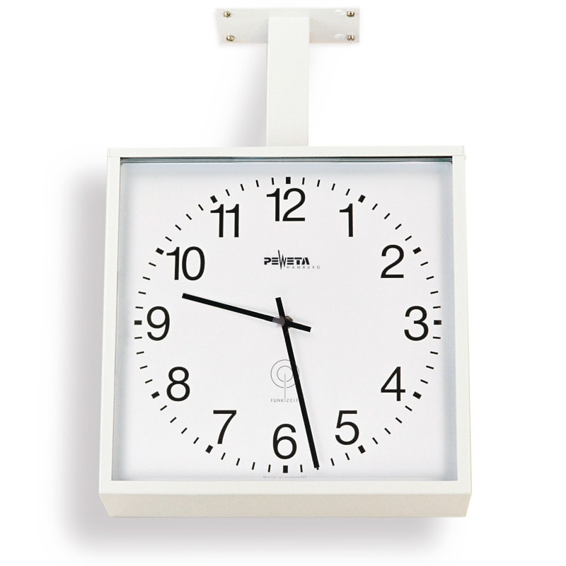 Elektrische, radio gestuurde plafondklok werkend op 230 volt netstroom, bestemd voor binnen. Op deze dubbelzijdige vierkante plafondklok leest u, dankzij de grote en duidelijke cijfers, in één oogopslag de tijd precies af. Dus een moderne en functionele plafondklok die ideaal is voor gebruik bij bedrijven en instituties, zoals op kantoor, fabriekshal en in de kantine.