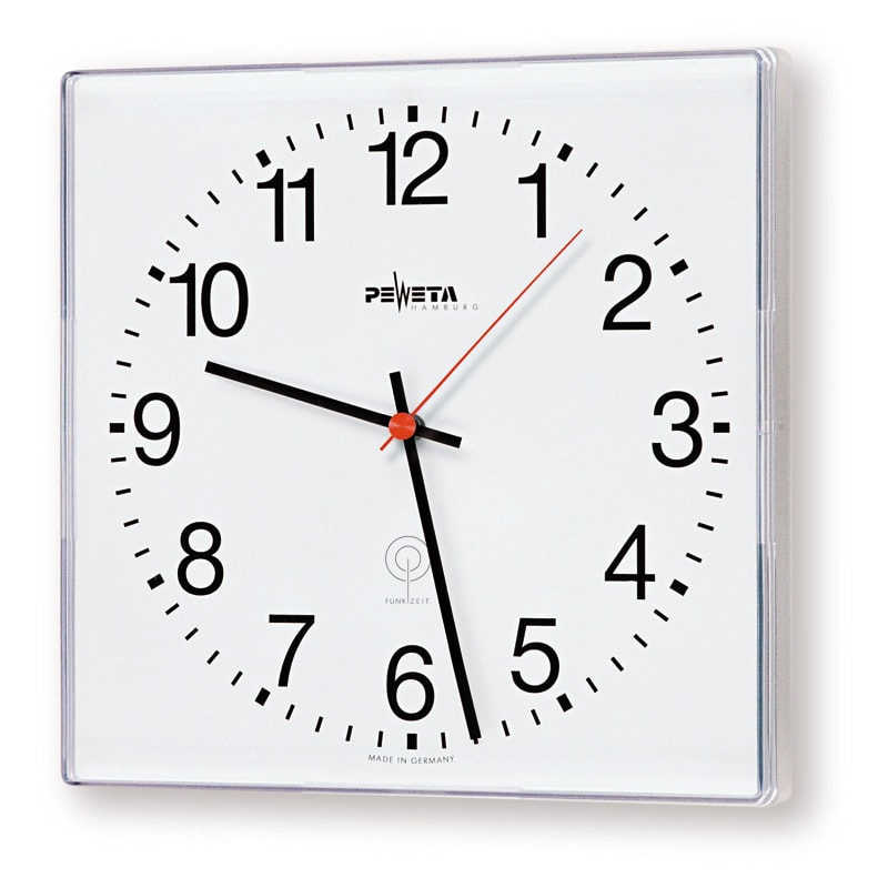 Elektrische, radio gestuurde Wandklok werkend op 230 volt netstroom, bestemd voor binnen. Op deze eenzijdige, vierkant wandklok leest u, dankzij de grote en duidelijke cijfers, in één oogopslag de tijd precies af. Dus een moderne en functionele wandklok die ideaal is voor gebruik bij bedrijven en instituties, zoals op kantoor, fabriekshal en in de kantine.