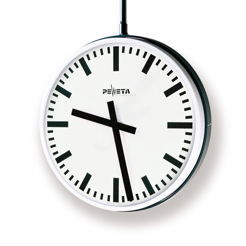 Elektrische, radio gestuurde staaf-plafondklok werkend op 230 volt netstroom, bestemd voor extra grote binnenruimtes, zoals hallen en productielijnen. Op deze dubbelzijdige staaf-plafondklok leest u, dankzij de grote, duidelijke wijzers en minutenstreepjes, in één oogopslag de tijd precies af. Dus een moderne en functionele staaf-plafondklok die ideaal is voor gebruik bij bedrijven en instituties, bijvoorbeeld in de fabriekshal of productieruimte.