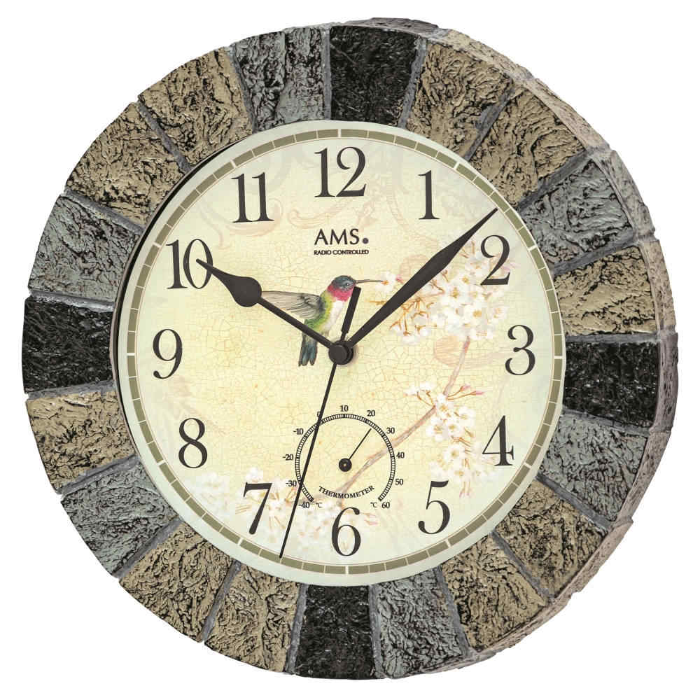 • Klok 5979 is een buitenklok wandklok in een kunststof steen motief uitvoering met mineraalglas voor de wijzerplaat.