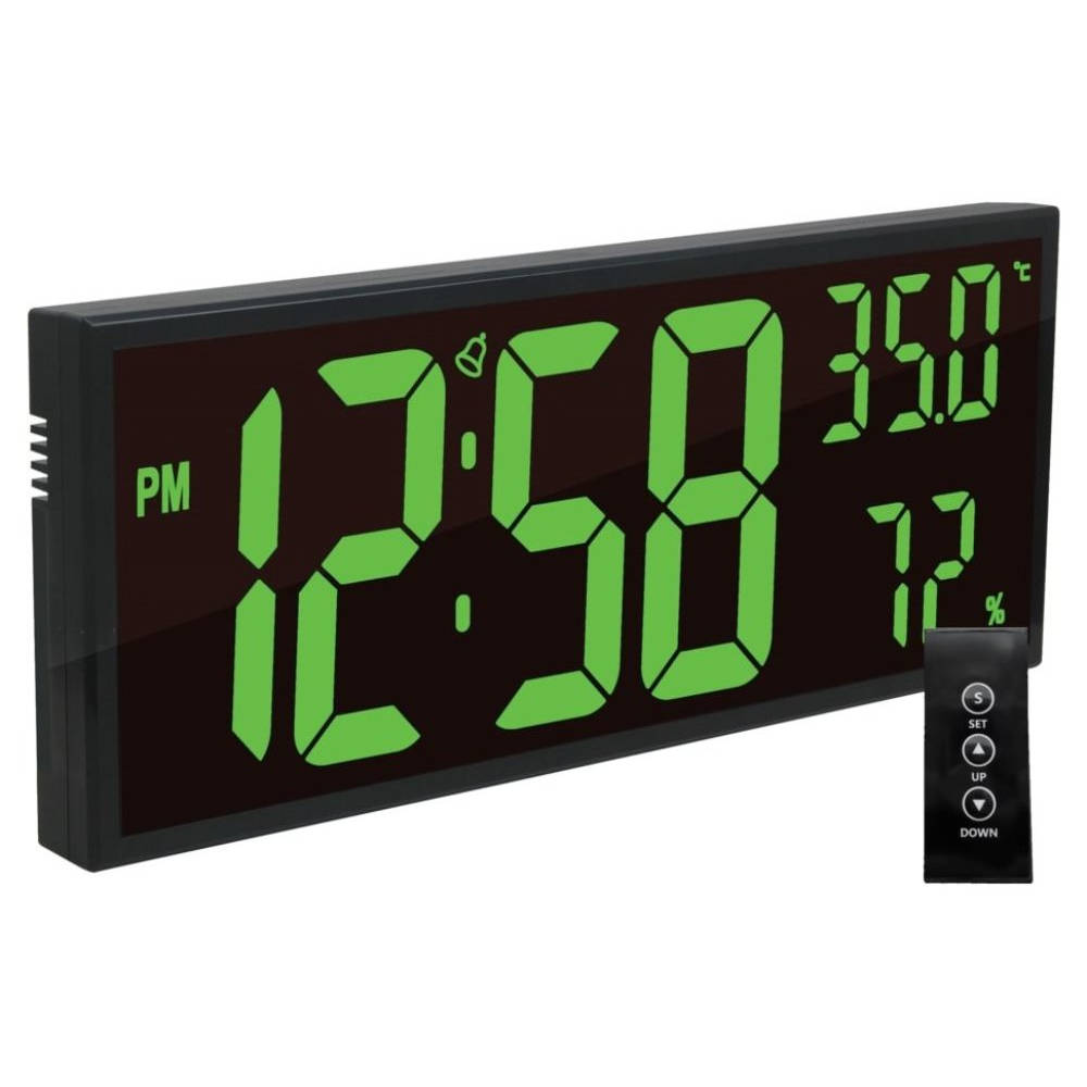 • Klok DH309-3J is een digitale LED klok met groene LED weergave en een zwarte kunststof behuizing.
