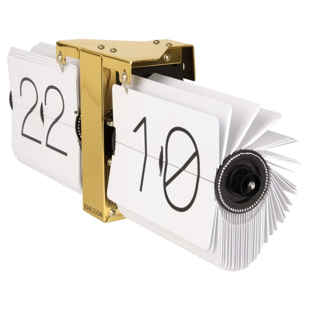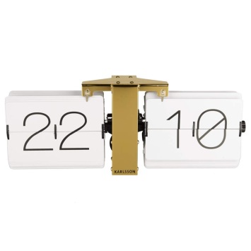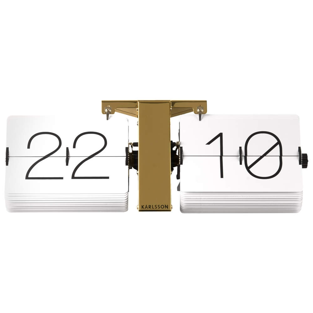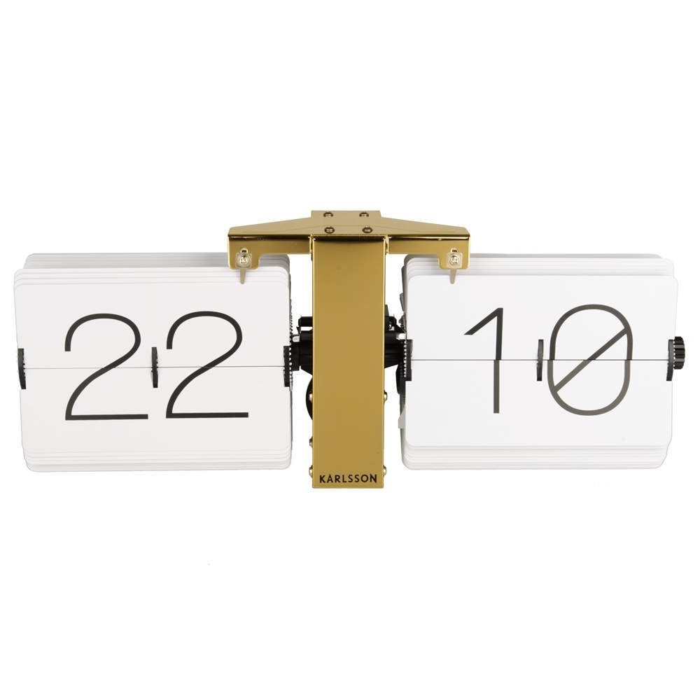 • Klok KA5601WH is een flip klok in een goudkleurige stalen uitvoering met witte bladen en zwarte cijfers.