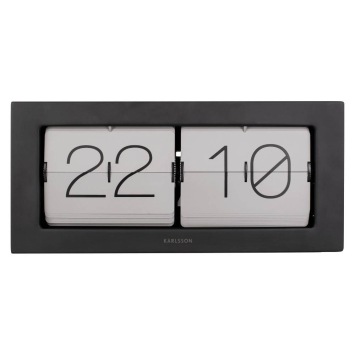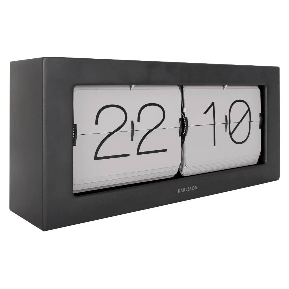 • Klok KA5642GY is een grote flip klok in een gematteerde zwarte metalen uitvoering met zwarte cijfers op grijze bladen.