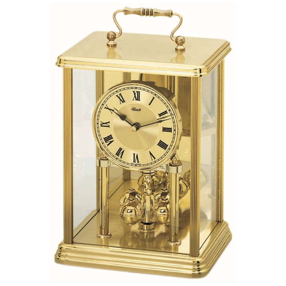 • Klok 82383-002300 is een jaarpendule tafelklok in een messing gekleurde uitvoering met glas aan de voorkant en zijkanten.