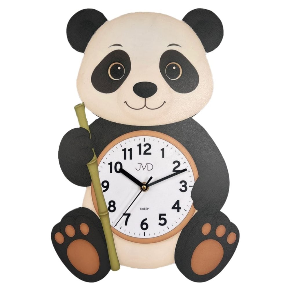 • Klok HJ113J is een bedrukte kinderklok wandklok van hout in de vorm van een panda.