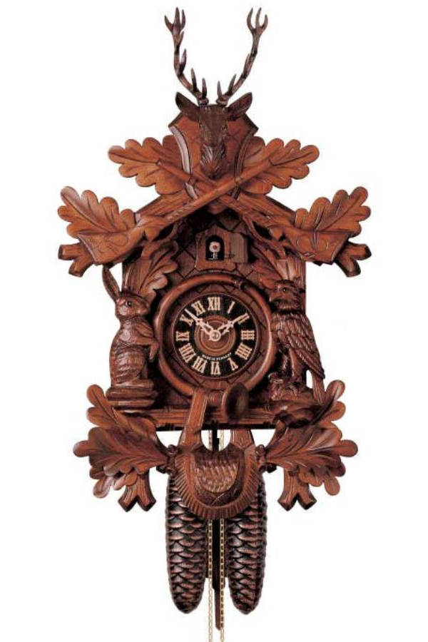 • Uitgevoerd met houten vogel, wijzerplaat, cijfers, wijzers en een slagafstelling.