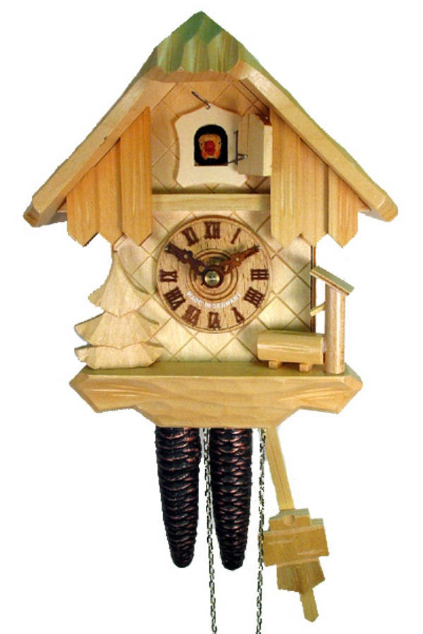 Deze koekoeksklok is uitgerust met een 1-daags mechanisch uurwerk dat functioneert op twee gewichten, die eenmaal per dag moeten worden opgetrokken. Het uurwerk maakt gebruik van een verfijnd systeem van tandwielen, gewichten en een slinger om de tijdsweergave en de koekoeksroep nauwkeurig aan te sturen.