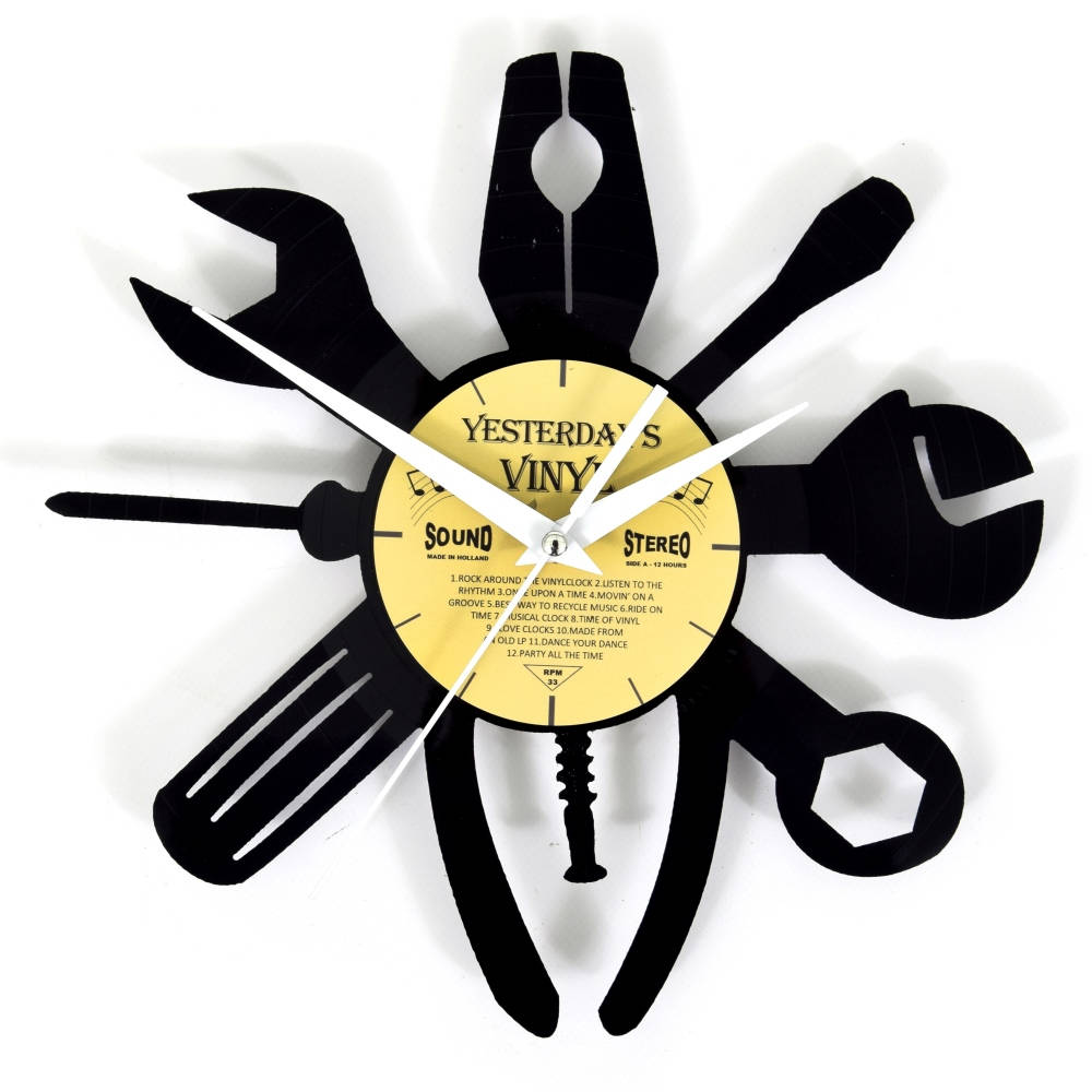 Klok 601-3223 is een LP klok met uniek uitgefreesd design van gereedschap. Dit herkenbare ontwerp is voor iedere klusliefhebber de ideale klok voor aan de wand in bijvoorbeeld de schuur, hobbyruimte of gewoon in de woonkamer. Ook voor een klusbedrijf of bedrijf waar nog veel met gereedschap wordt gewerkt is dit een leuke en tevens functionele aanvulling.