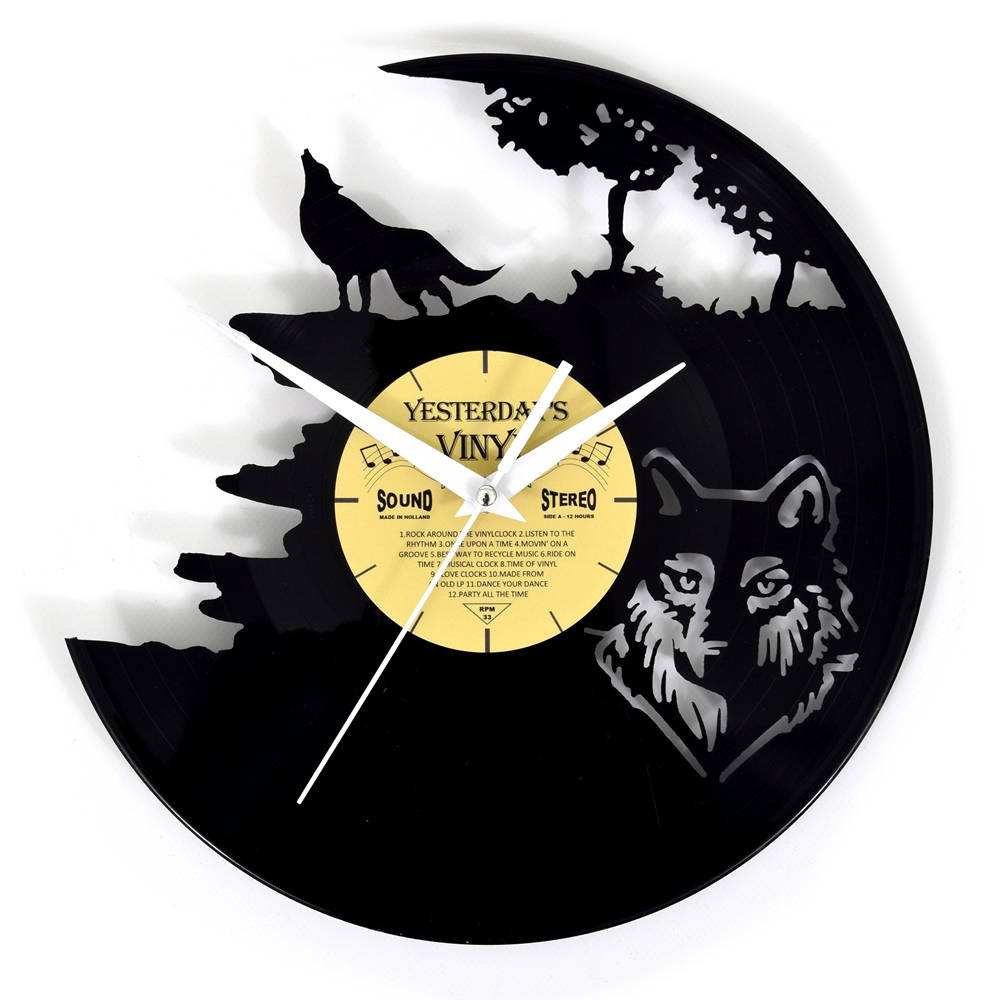 Klok 601-3209 is een LP klok met uniek uitgefreesd design van een huilende wolf op de heuvel van een berg. Dit leuke ontwerp met tevens een wolvenkop afgebeeld kan verschillende gedachtes meebrengen, naast dat een wolf als een gevaarlijk prooidier wordt gezien, heeft deze toch ook nog enigszins een schattig karakter als voorouder van de hond.