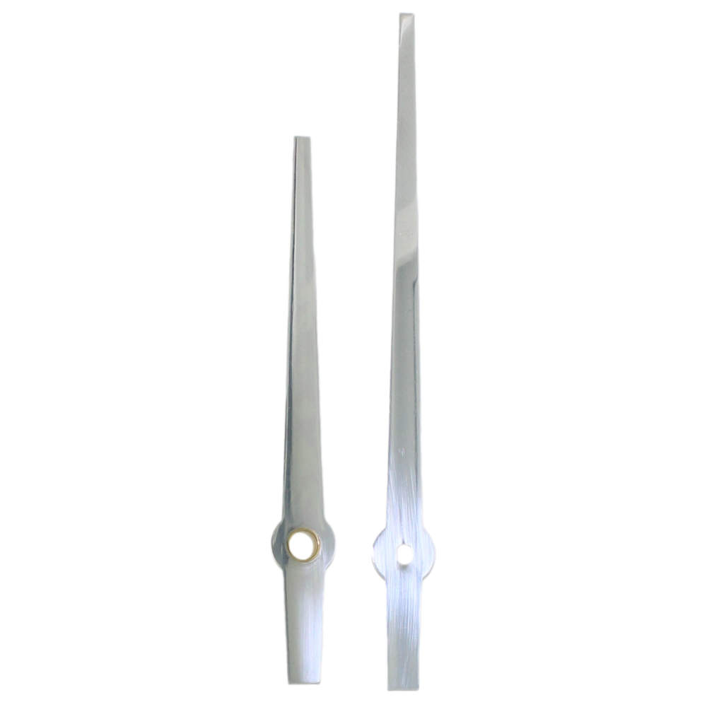 • Glanzend zilverkleurige wijzerset van metaal.