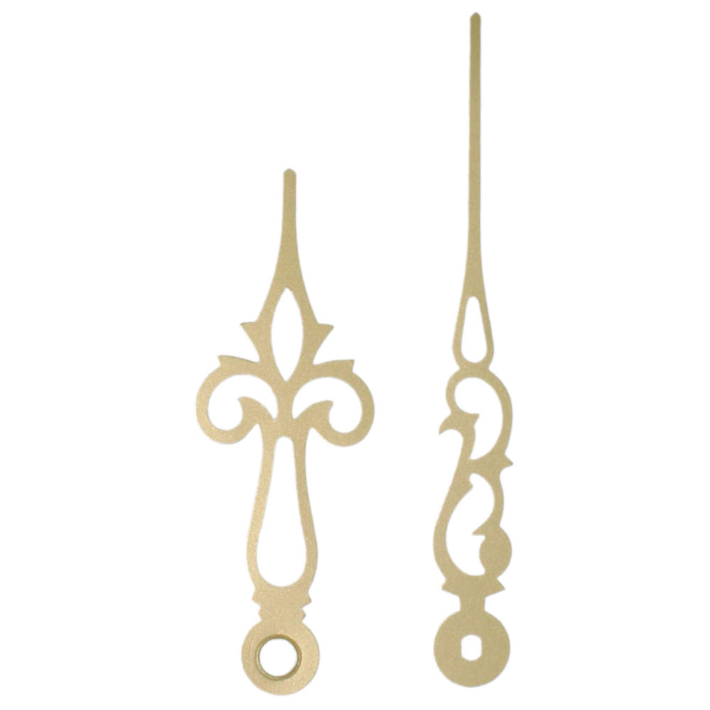 • Mat goudkleurige wijzerset van metaal.