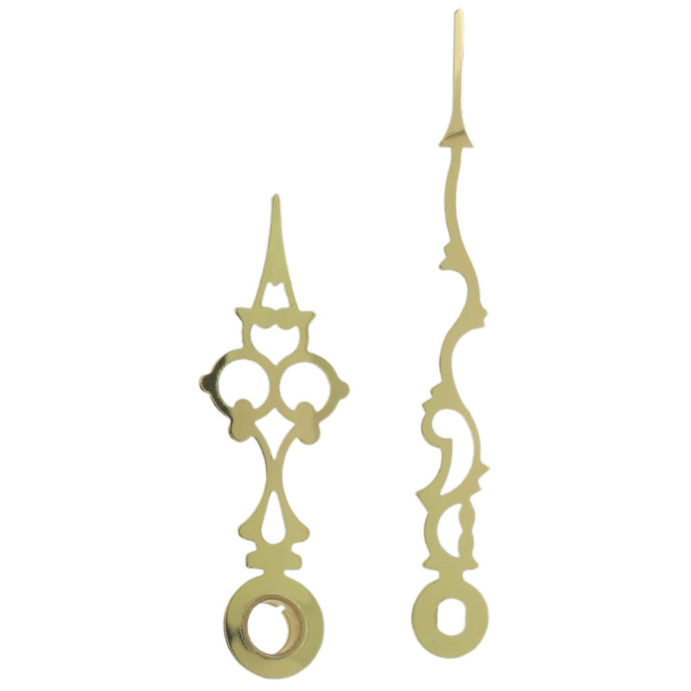 • Glanzend goudkleurige wijzerset van metaal.