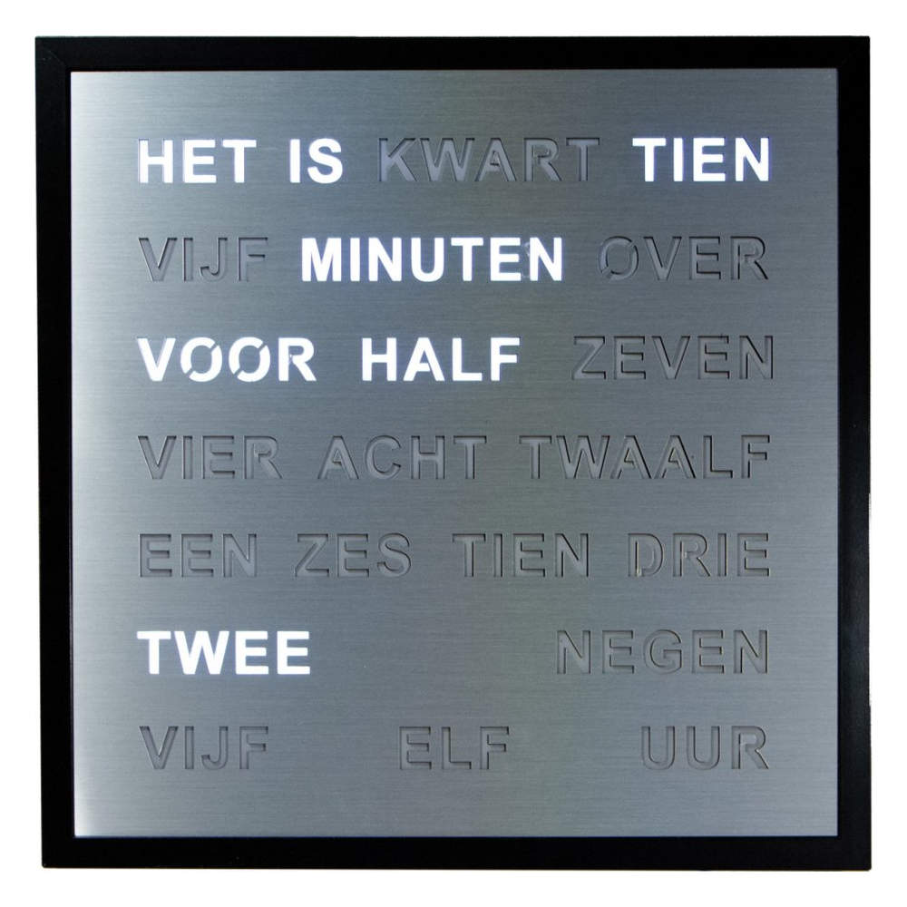 • Deze woordklok is bestemd als wandklok. (Heeft geen standaard).