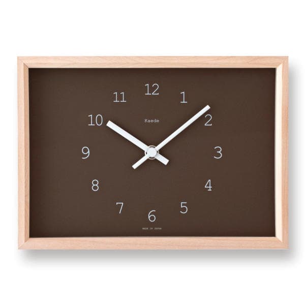 • Klok NY14-02BW is een klok met een licht houten kast, bruine wijzerplaat met witte opgedrukte cijfers en witte wijzers.