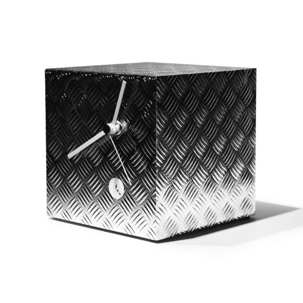 • Klok QUADRA15 is een design tafelklok met metallic streep motief.