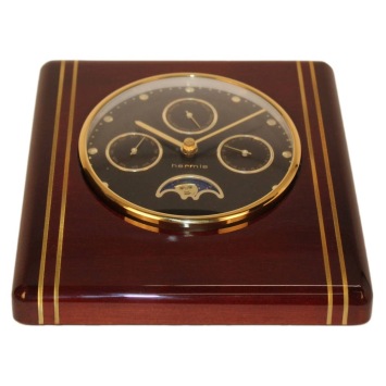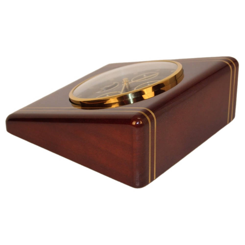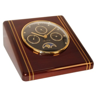 • Klok 22536-072100 is een tafelklok van mahoniehout met goudkleurige biezen.