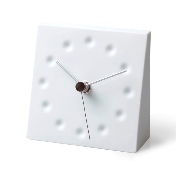 • Klok KC10-12 is een design tafelklok in een witte porseleinen uitvoering met ingegoten urenmarkeringen.
