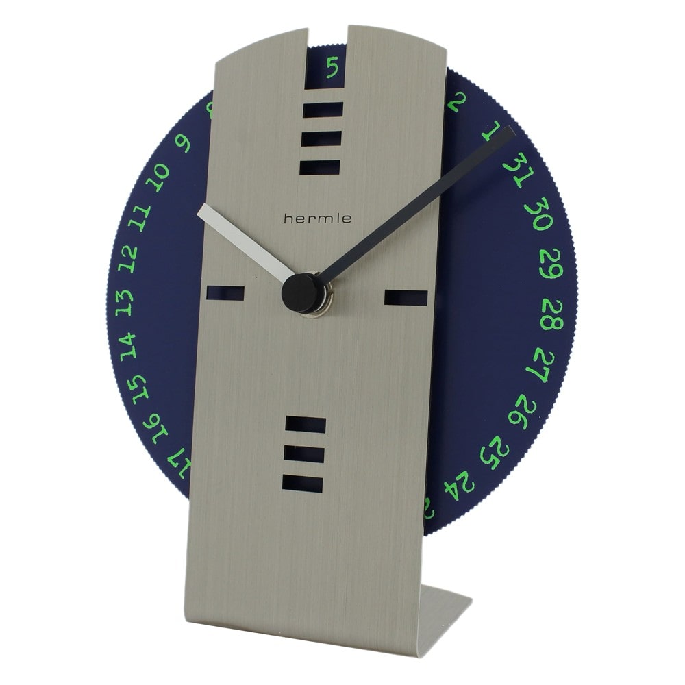 • Klok 22698-002100 is een matte zilverkleurige RVS tafelklok met uitgelaserde urenmarkeringen en datumvenster.