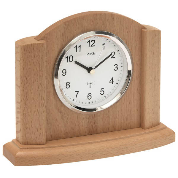 • Klok 5122-18 is een tafelklok van massief beukenhout met een chroomkleurige rand om de wijzerplaat.