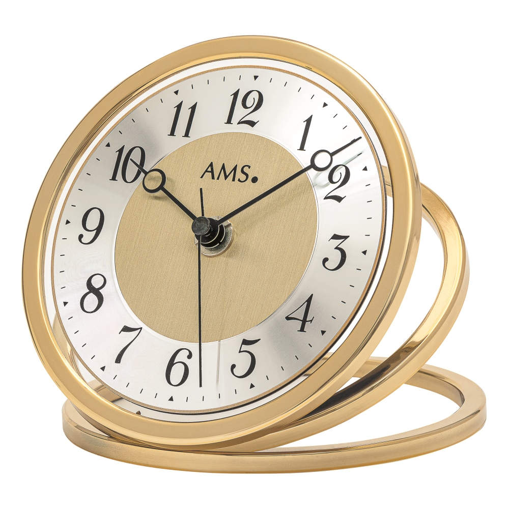 • Klok 5179 is een tafelklok in een messingkleurige metalen uitvoering met een matte messingkleurige aluminium wijzerplaat en zilverkleurige cijferrand bedrukt met zwarte cijfers.