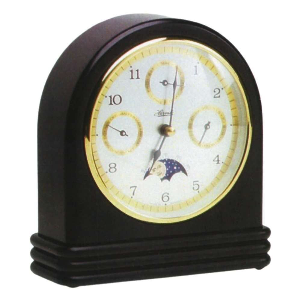 • Klok 22540-742100 is een tafelklok in een zwart gelakte houten uitvoering met een messing rand en gebold mineraalglas voor de wijzerplaat.
