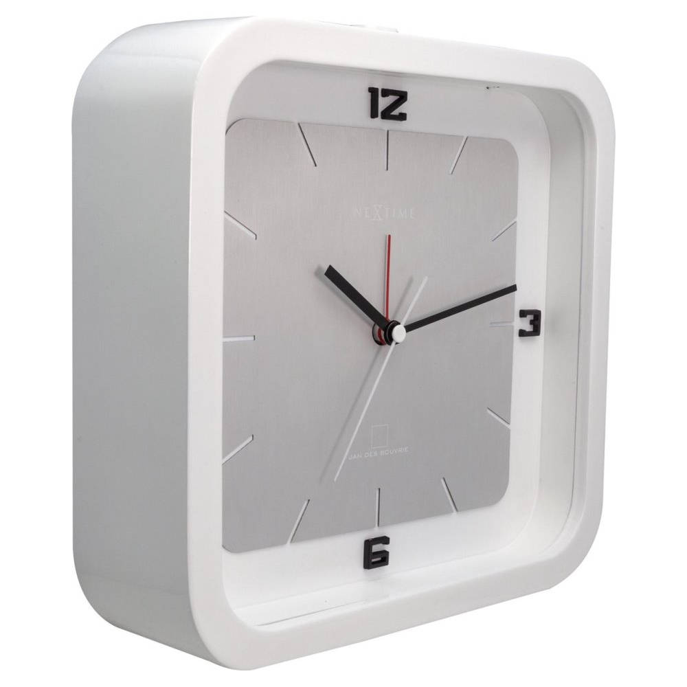• Klok NE5221WI is een tafelklok met wekfunctie in een houten witte hoogglans piano finish uitvoering met een mineraalglas aan de voorkant.