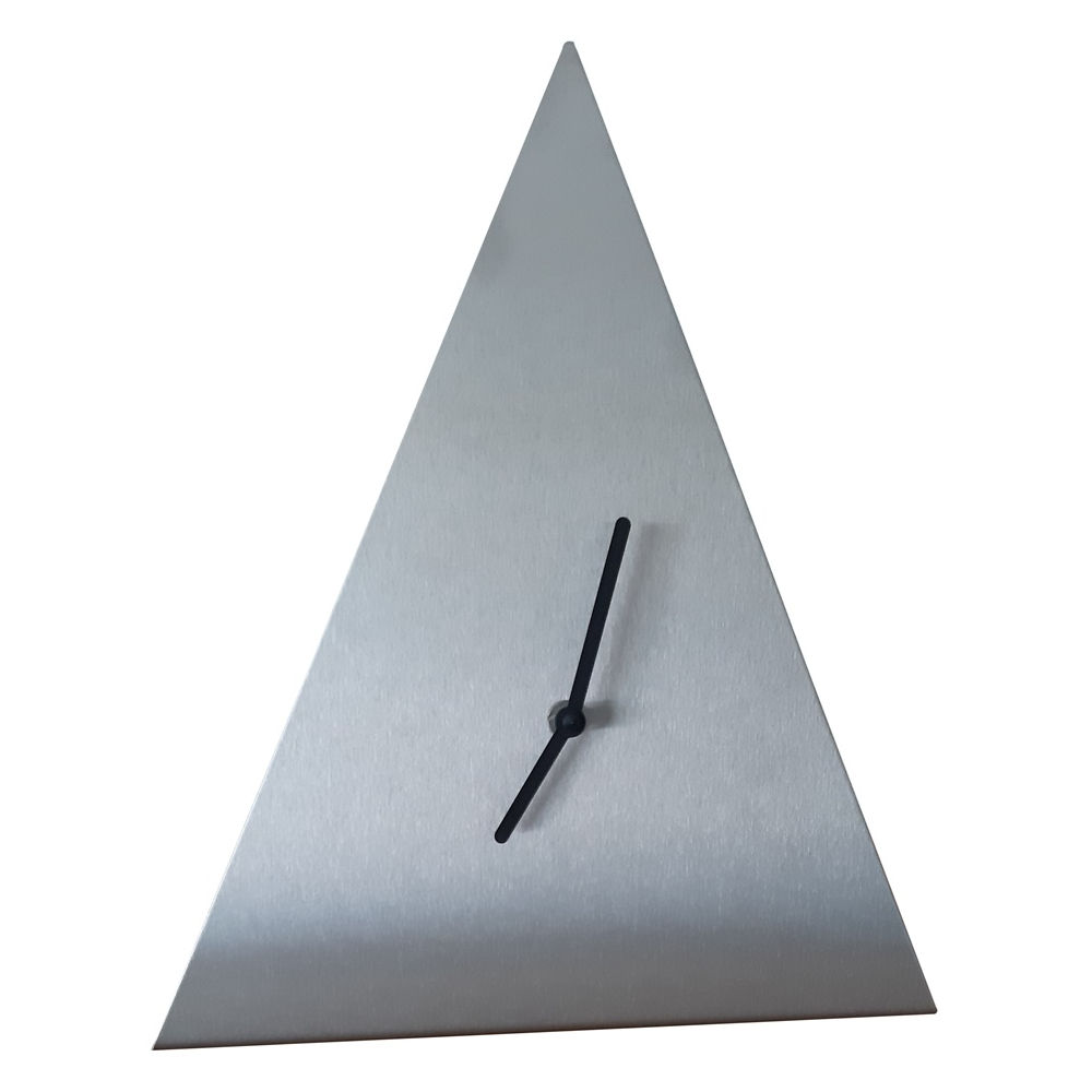 • Klok 19030653 is een tafelklok in een RVS gematteerde uitvoering met zwarte wijzers.
