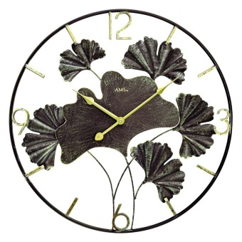 • Klok 9704 is een bloemendesign wandklok met een metalen zwart-goudkleurig antiek stijl frame.