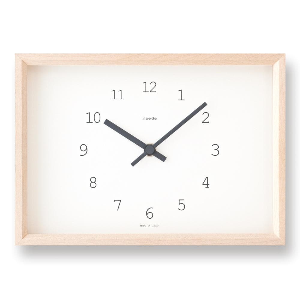• Klok NY14-02WH is een design klok met een massief esdoorn houten kast, witte wijzerplaat met zwarte opgedrukte cijfers en zwarte wijzers.