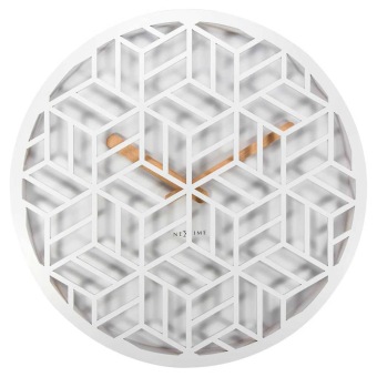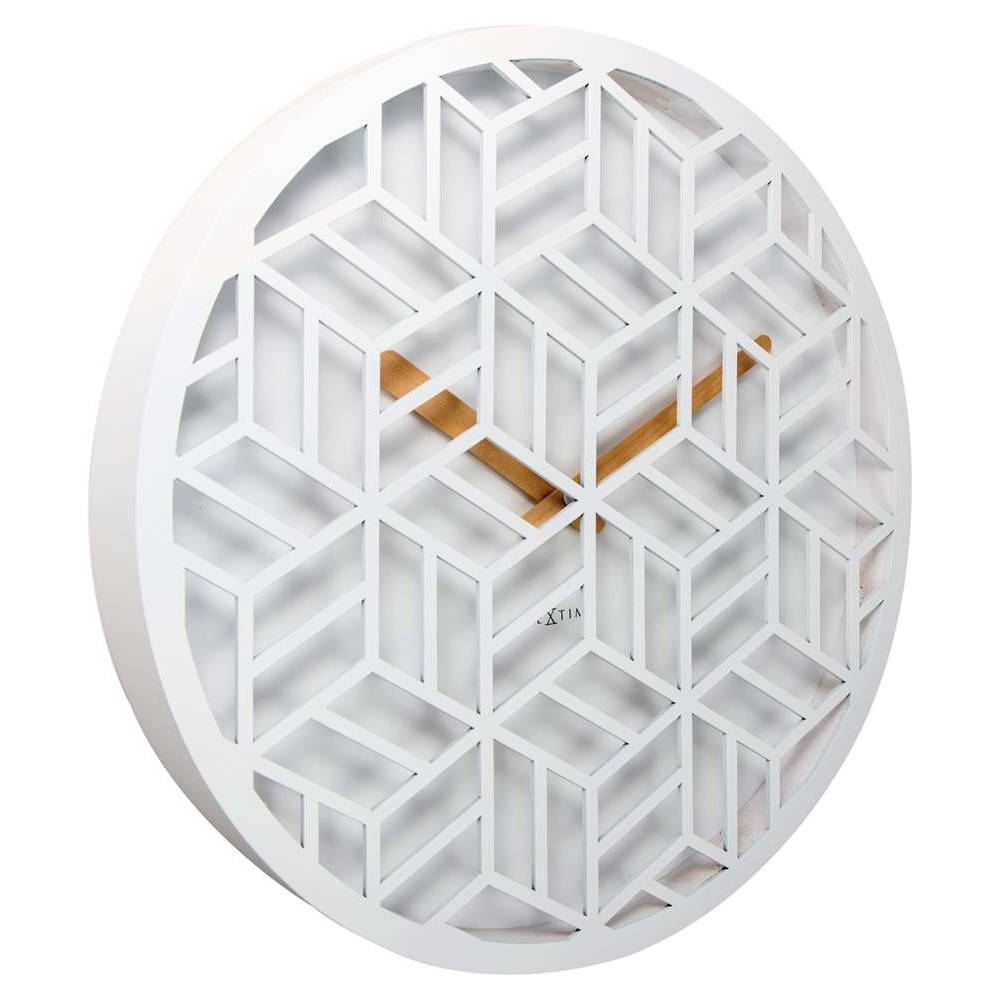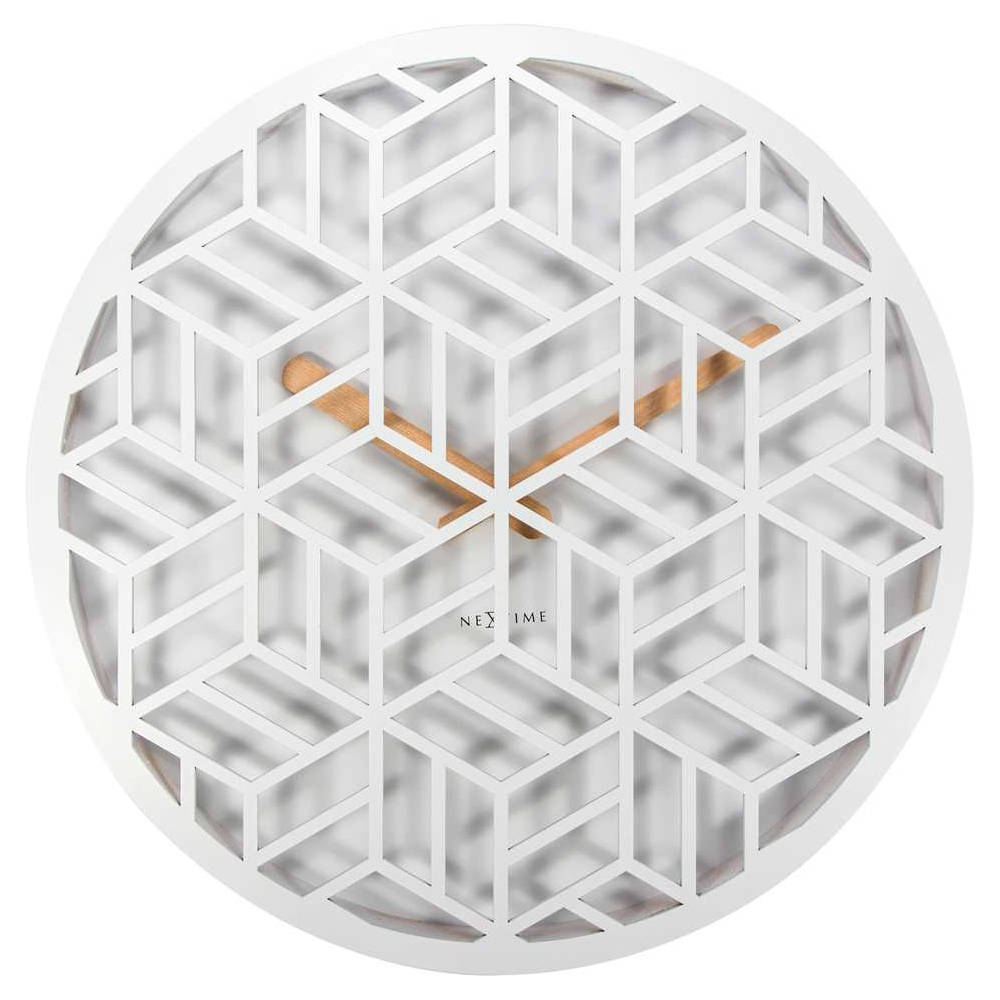 • Klok NE3215WI is een houten design wandklok in een mat wit gelakte uitvoering met licht houten wijzers.