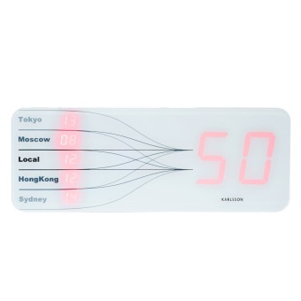 • Klok KW0033WH is een digitale wereldtijdenklok, wandklok van wit kunststof met weergave van 5 wereldtijden.