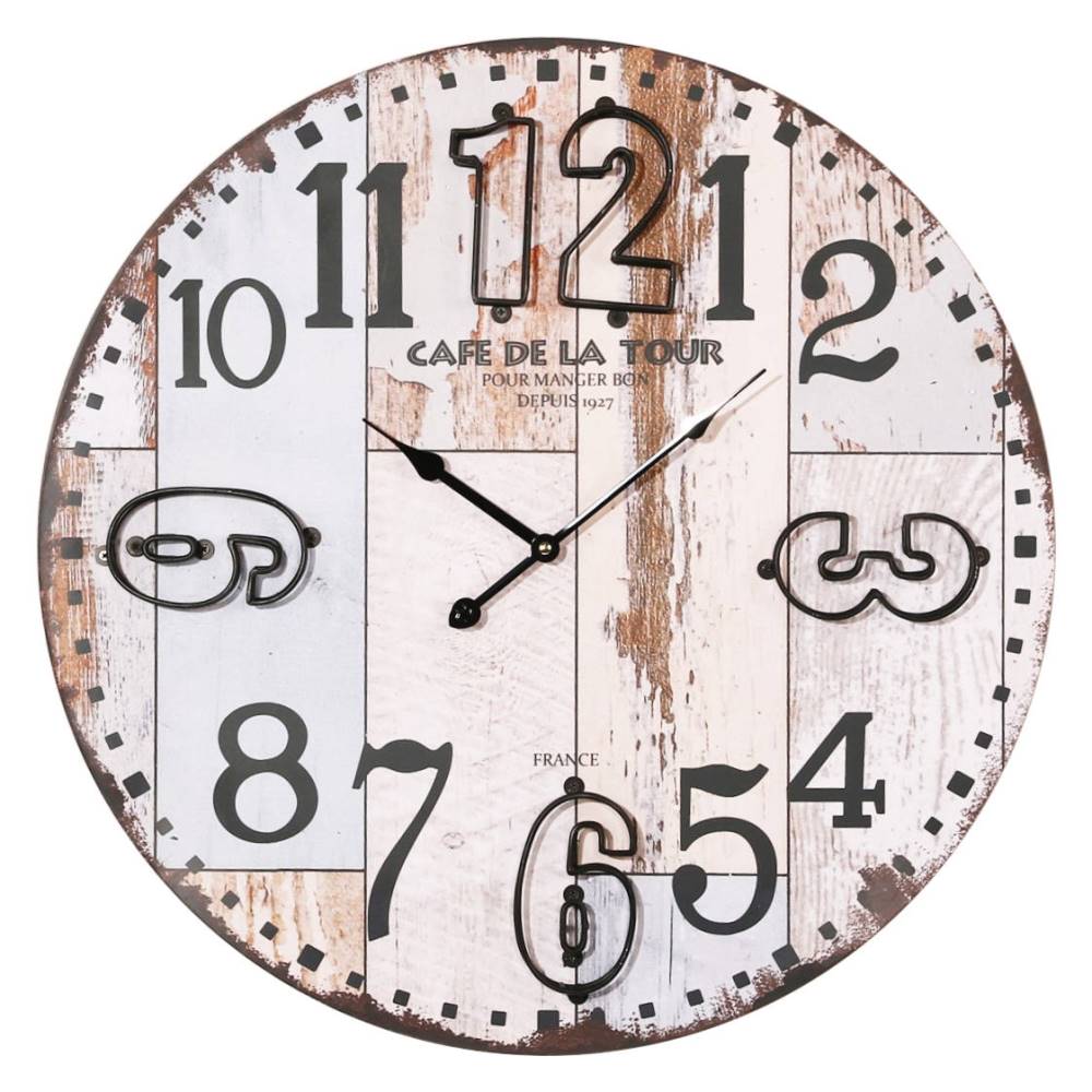 • Deze wandklok heeft een quartz uurwerk die functioneert op een meegeleverde kwaliteitsbatterij.