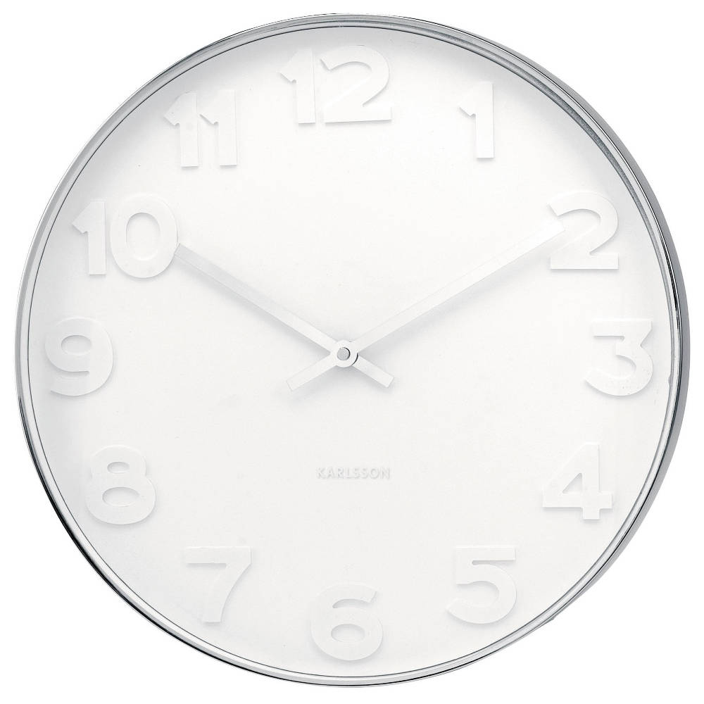 • Klok KA4381 is een grote wandklok met een glanzende chroomkleurige metalen rand en een mineraalglas voor de wijzerplaat.