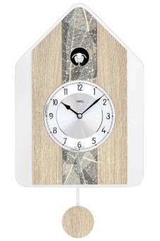 • Klok 7499 is een koekoeksklok wandklok van hout met een mat acrylglas opgelegd met een sonoma eikenhouten motief, ingelegd met een boombladeren structuur en Swarovski stenen.