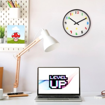 • Klok NX7371 is een wandklok met een nostalgische wijzerplaat gebaseerd op de klassieke games en 8-bit graphics.