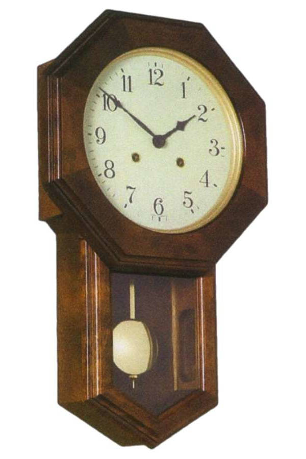 • Klok 140-1632 is een pubklok in een notenhouten uitvoering met een vlak mineraalglas voor de wijzerplaat en slinger.