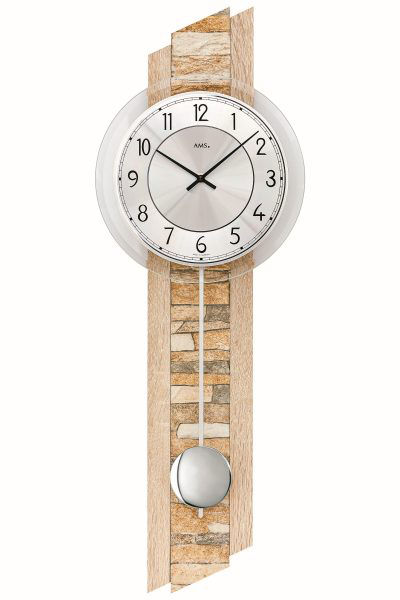• Klok 7423 is een wandklok met een houten achterwand met een sonoma eikenhouten motief en ingelegde natuursteen elementen.