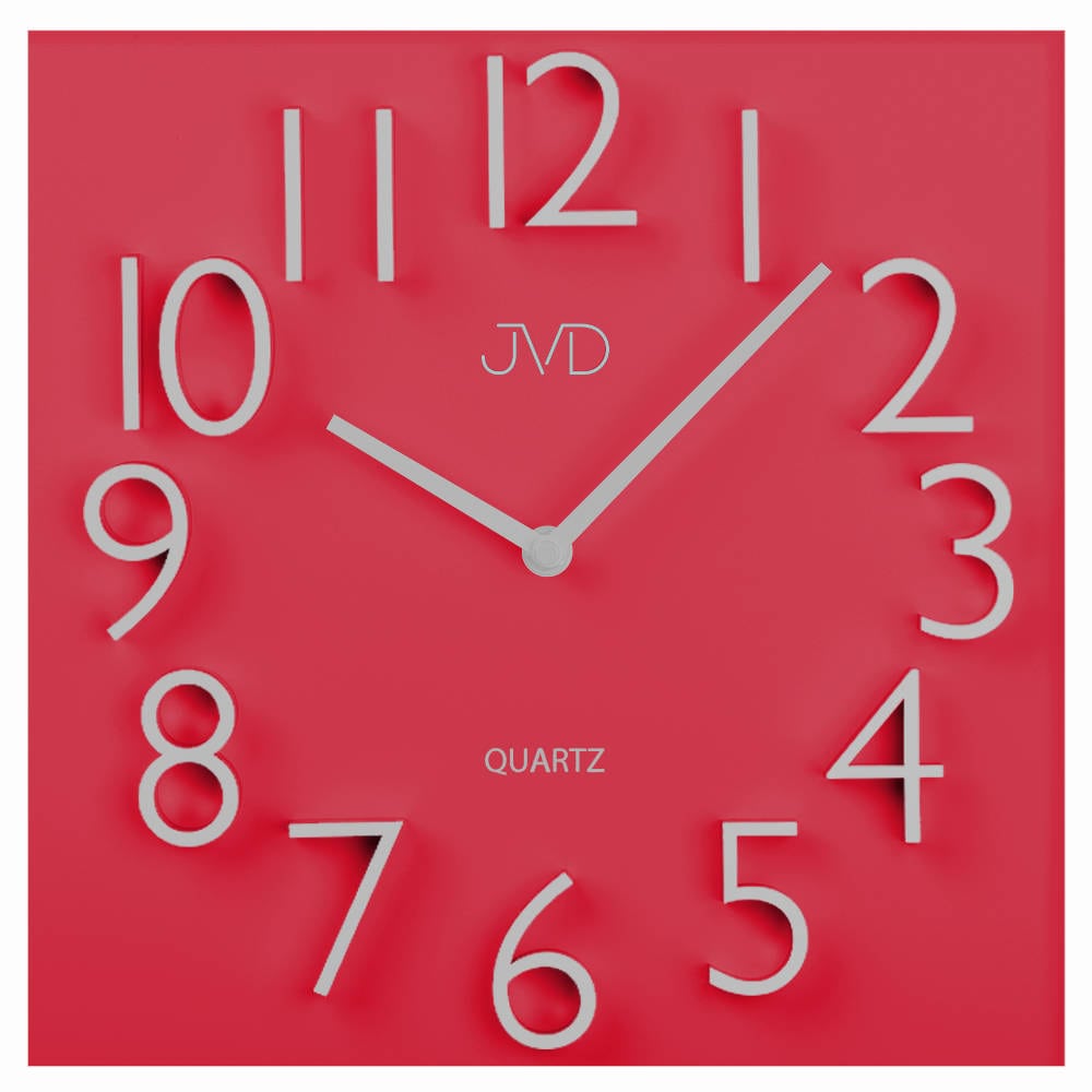 • Klok HB27J is een wandklok van mat rood gelakt hout opgelegd met mat zilverkleurige cijfers en aluminium wijzers.