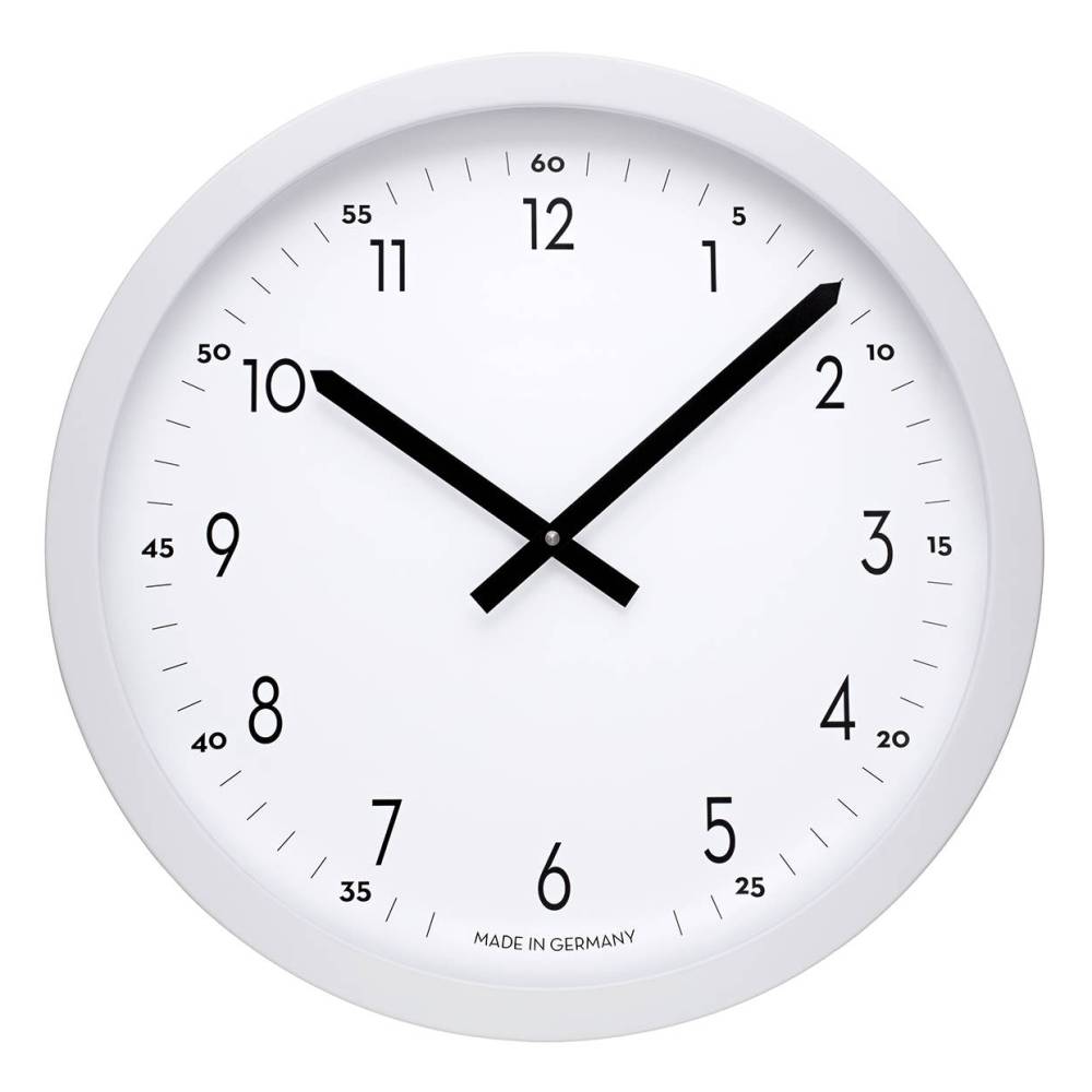 • Klok 0103-0 is een wandklok met een rand van mat wit gelakt metaal.