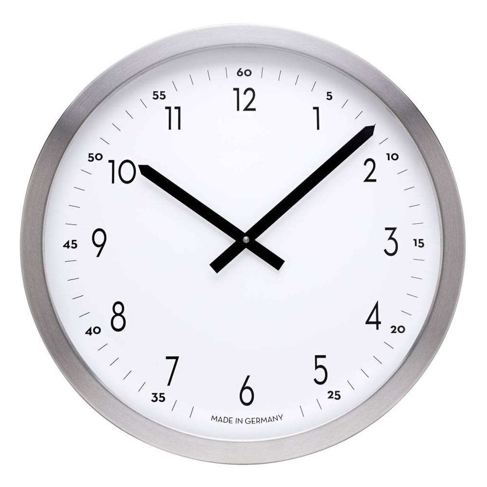 • Klok 0103-19 is een wandklok met een metalen rand van geborsteld aluminium.