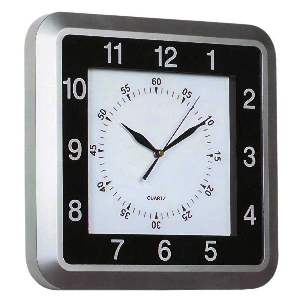 • Klok 140-1562 is een wandklok met een mat zilver gelakte kunststof rand en mineraalglas voor de wijzerplaat.