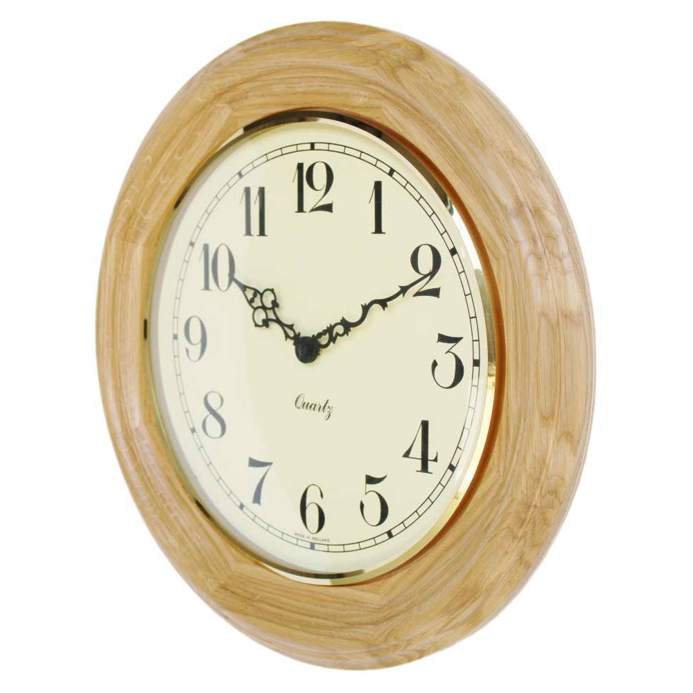 • Klok 140-1958 is een wandklok in een massief licht eikenhouten schoolklok stijl uitvoering.