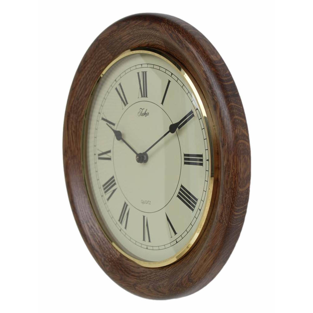 • Klok 1603032 is een wandklok in een massief donker eikenhouten schoolklok stijl uitvoering.